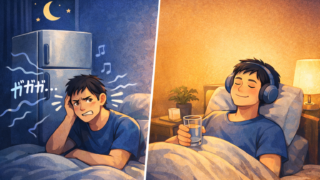 眠れない原因 冷蔵庫がうるさくて眠れない原因と今すぐできる対処法|故障かどうかの見分け方 冷蔵庫がうるさくて眠れないときは、振動や設置状態が原因かもしれません。この記事では、夜だけ音が気になる理由、今すぐできる対処法、故障かどうかの見分け方、防振マットや耳栓の活用法までわかりやすく解説します。 2026.03.02 眠れない原因